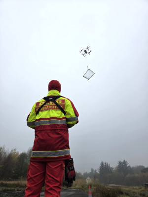 - Teile der Logistikgruppe der DLRG Hagen im Bremischen mit einer Transportdrohne